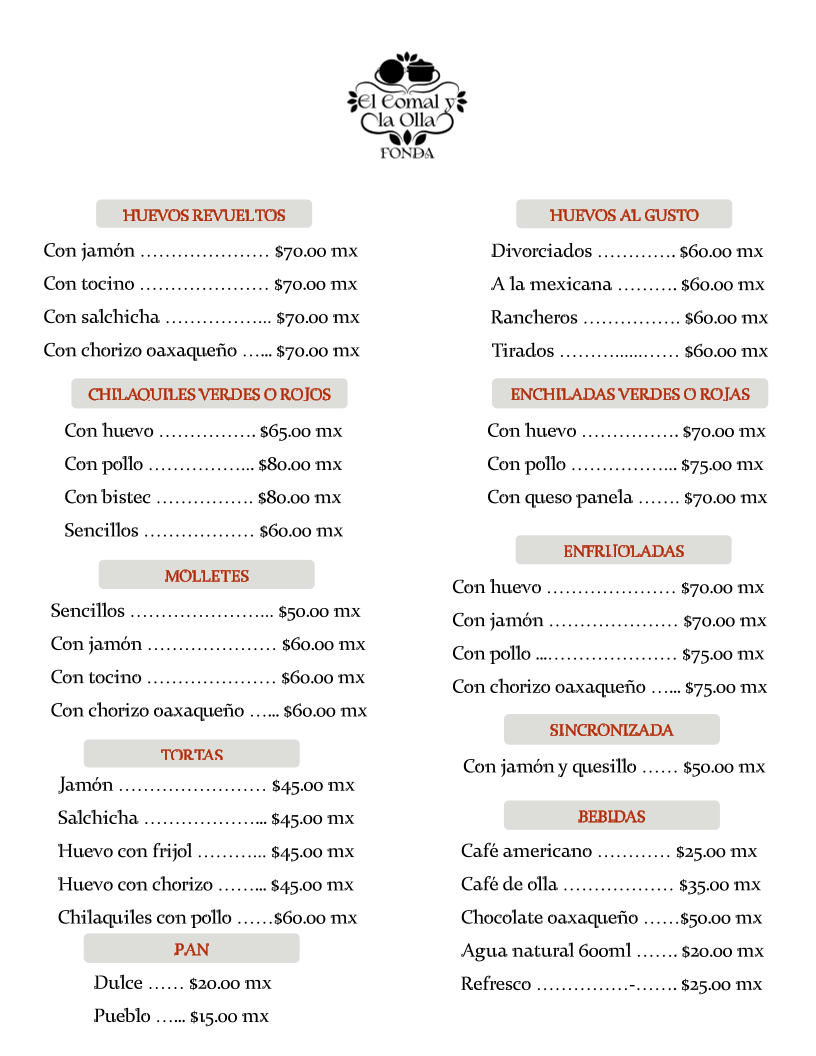 Alongside these vibrant chilaquiles, you can also indulge in the rich Enfrijoladas con Chorizo, bursting with flavor and served with freshly brewed café de olla or refreshing juice, all at an affordable price. The atmosphere is inviting, and the owners' genuine hospitality adds to the experience, often going the extra mile to accommodate and educate patrons about Mexican cuisine. Whether you're a local or visiting, El Comal y la Olla promises a wholesome breakfast adventure that feels like a warm embrace.